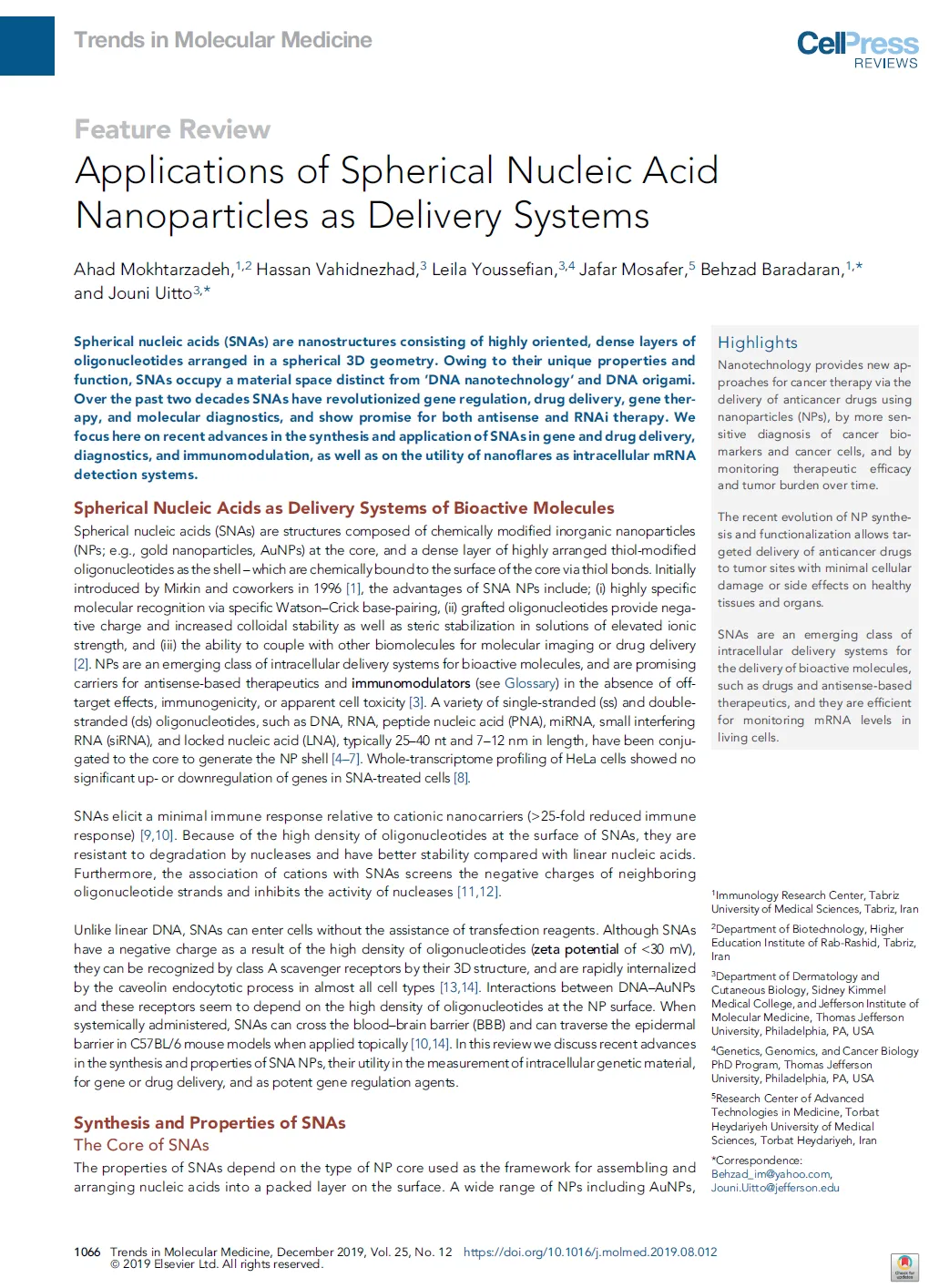 تصویر طراحی شده توسط آقای امیر باغبان زاده در ژورنال (Trends in molecular medicine (Impact Factor: 11.028 ، به عنوان طرح برتر روی جلد انتخاب گردید.